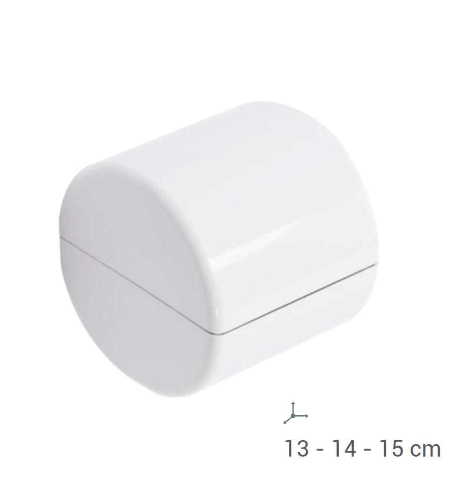 Porta rotolo tondo in Durolite/ABS bianco, design elegante e compatto. Fissaggio a parete con sistema a scomparsa. Dimensioni 130x150x140h mm, peso 480 g. Certificato CE, ideale per bagno e cucina. Quantità: 1 pezzo.