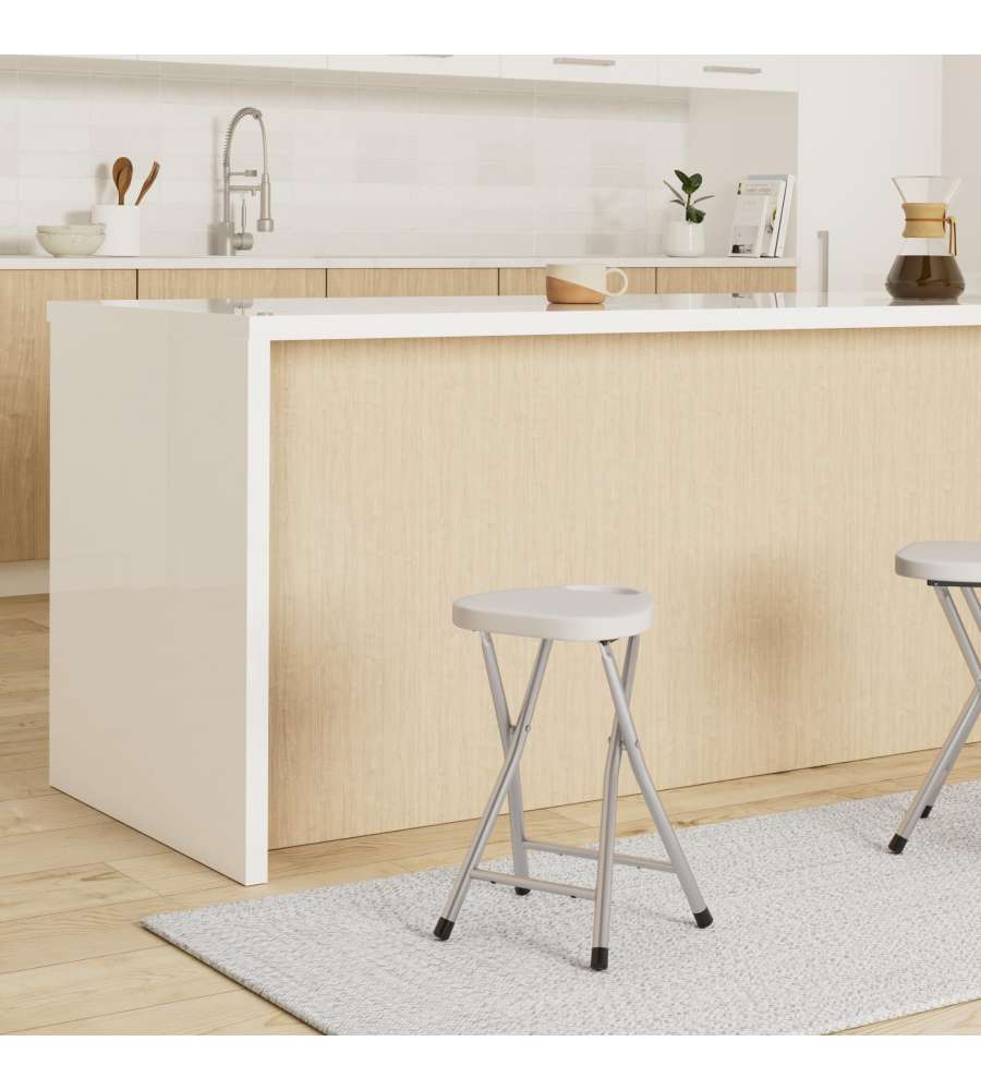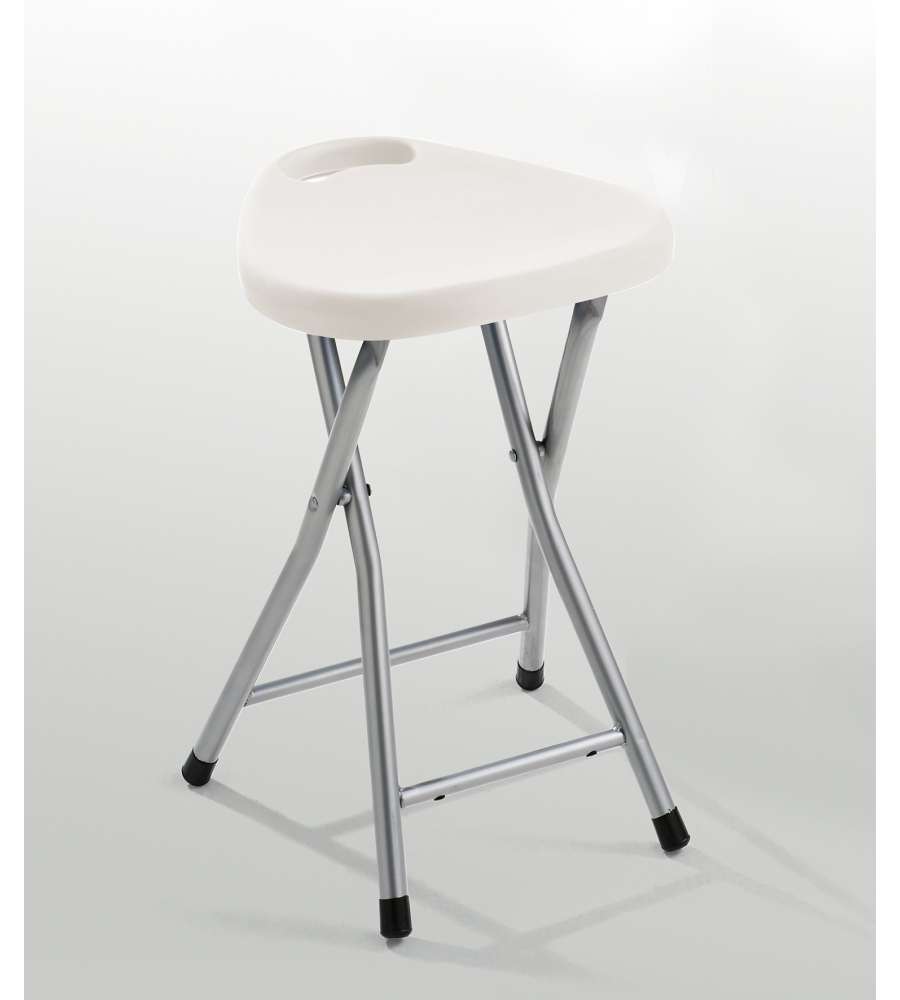 Descrizione: Sgabello richiudibile bianco, realizzato in metallo e resine termoplastiche, perfetto per ogni ambiente.