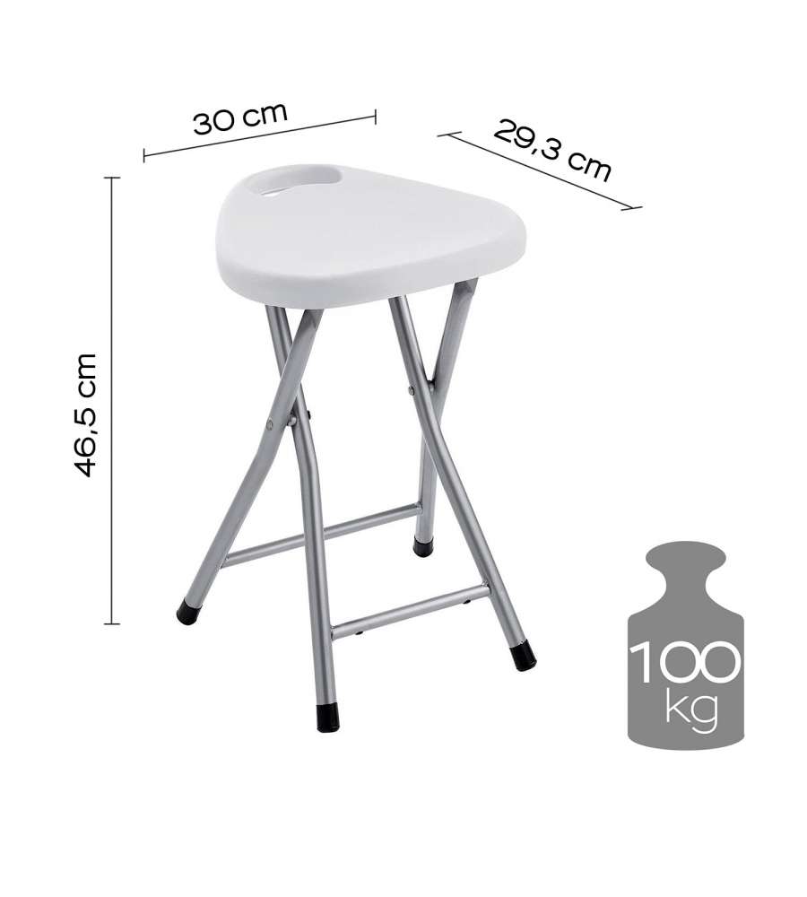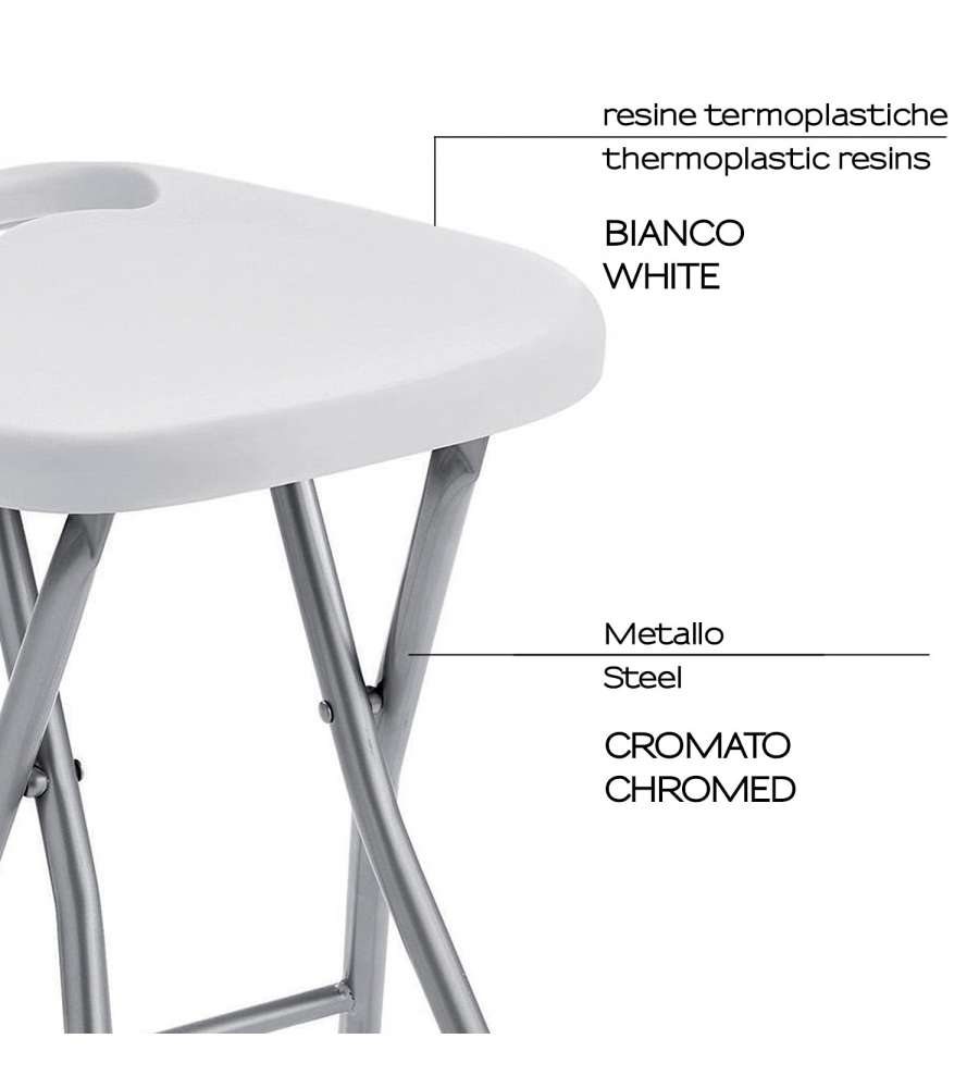 Sgabello richiudibile bianco, realizzato in metallo e resine termoplastiche, dimensioni 300x293x465 mm, peso 1170 gr.Garanzia: