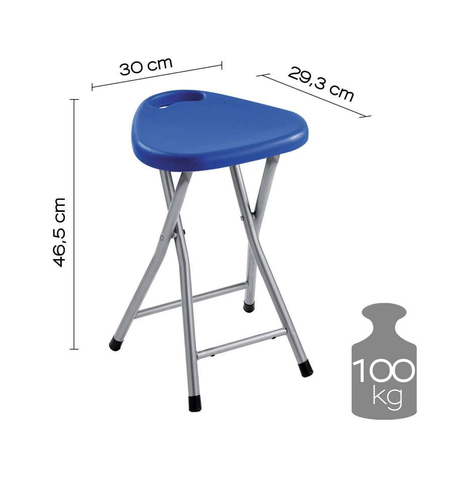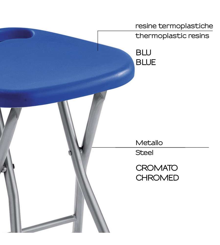 Sgabello pieghevole Gedy blu, realizzato in metallo e resine termoplastiche. Dimensioni compatte (300x293x465 mm) e peso di 1170 gr. Design pratico, offre una seduta comoda e sicura con piedini antiscivolo. Ideale per arredobagno.Garanzia: