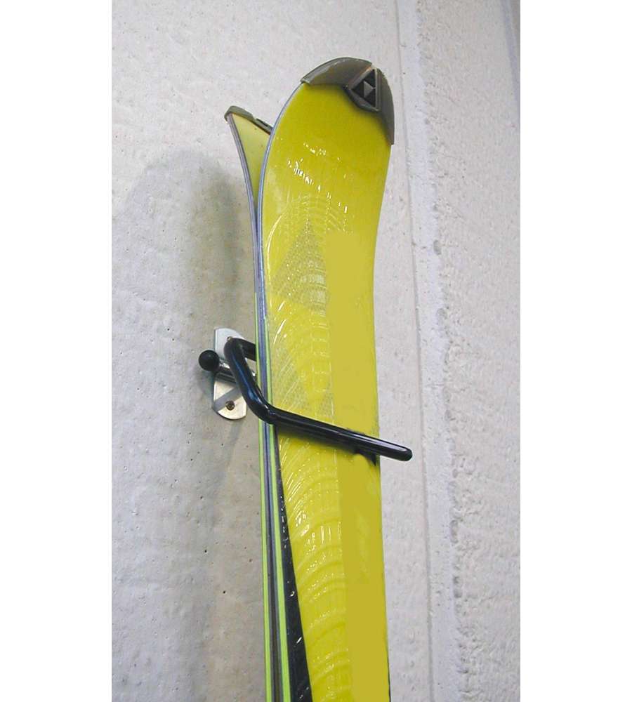 Gancio portasci in acciaio zincato plastificato, resistente e duraturo. Dimensioni attacco 30x65 mm, gancio Ø8 mm, lunghezza 120 mm. Facile da installare, ideale per organizzare e proteggere i tuoi sci in garage o spazi dedicati.