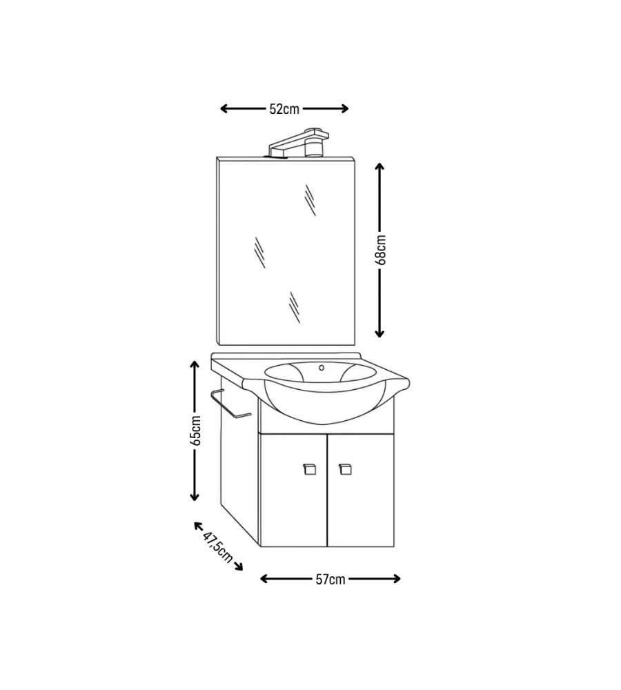 Base 57 x 47,5 x 65cm; Specchiera 52 x 68 cmAltezza: