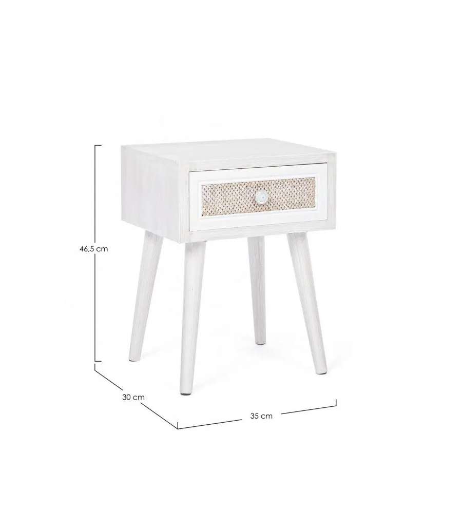 Descrizione: Mobiletto Montiel Bizzotto, elegante e funzionale, con cassetto in tessuto e finitura bianco/noce. Dimensioni compatte (35x30x46,5 cm), ideale per spazi ridotti. Perfetto per ogni ambiente!