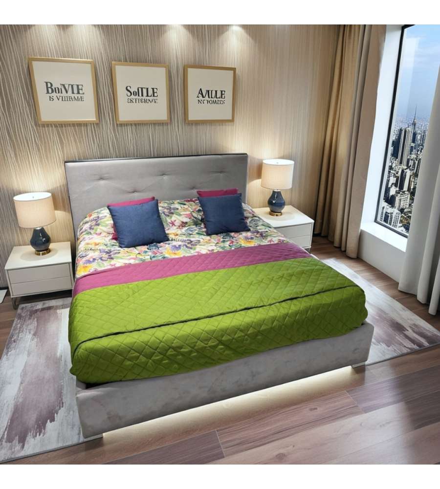 Questo letto matrimoniale non solo offre un design elegante e moderno, ma è anche estremamente funzionale. La sua ampia testata permette di appoggiarsi comodamente per leggere o rilassarsi, mentre il tessuto vellutato aggiunge un tocco di lusso e comfort. È ideale per chi cerca un letto capace di combinare stile e praticità, rendendo ogni camera da letto un ambiente accogliente e raffinato.
