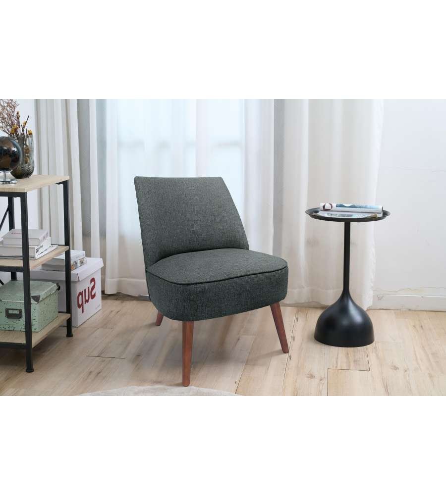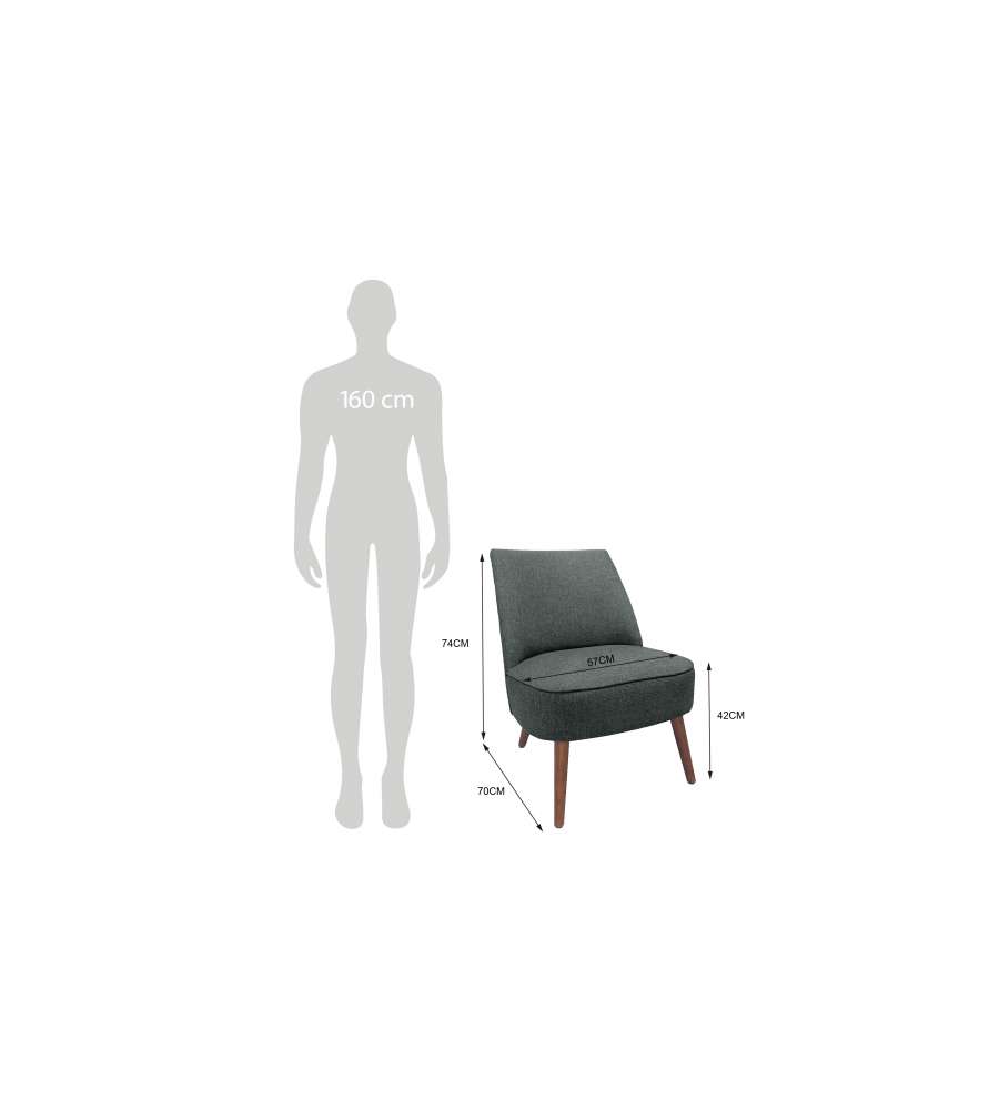 Poltroncina Luna Domo Mea, dimensioni 57x70x74 cm, colore grigio. Struttura in legno di caucciù, imbottitura in schiuma e rivestimento in tessuto misto lino. Portata 100 kg, piedini regolabili. Assemblaggio richiesto, 10 min.Portata:
