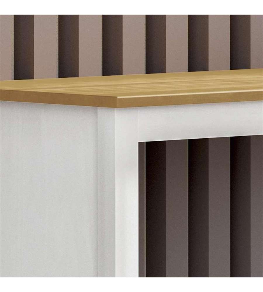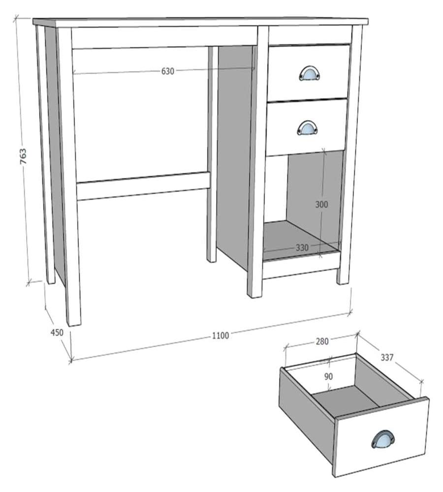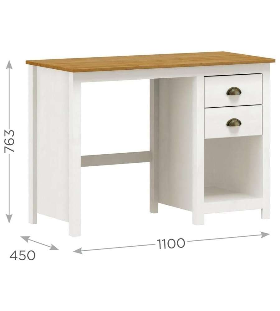 Scrivania Topazio bianca, dimensioni 110 x 45 x 76H cm, dotata di due cassetti. Include kit di montaggio. Piano superiore a contrasti.