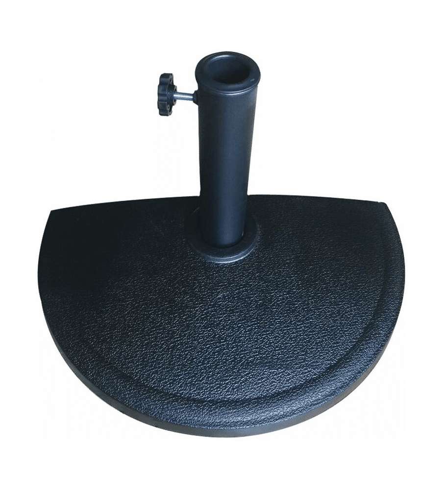 Base per ombrellone da muro a mezza luna in resina antracite, dimensioni 50x25xH33 cm, peso 9 kg. Resistente a condizioni atmosferiche avverse, compatibile con pali D.39 mm, ideale per ottimizzare gli spazi all'aperto.Uso esterno: