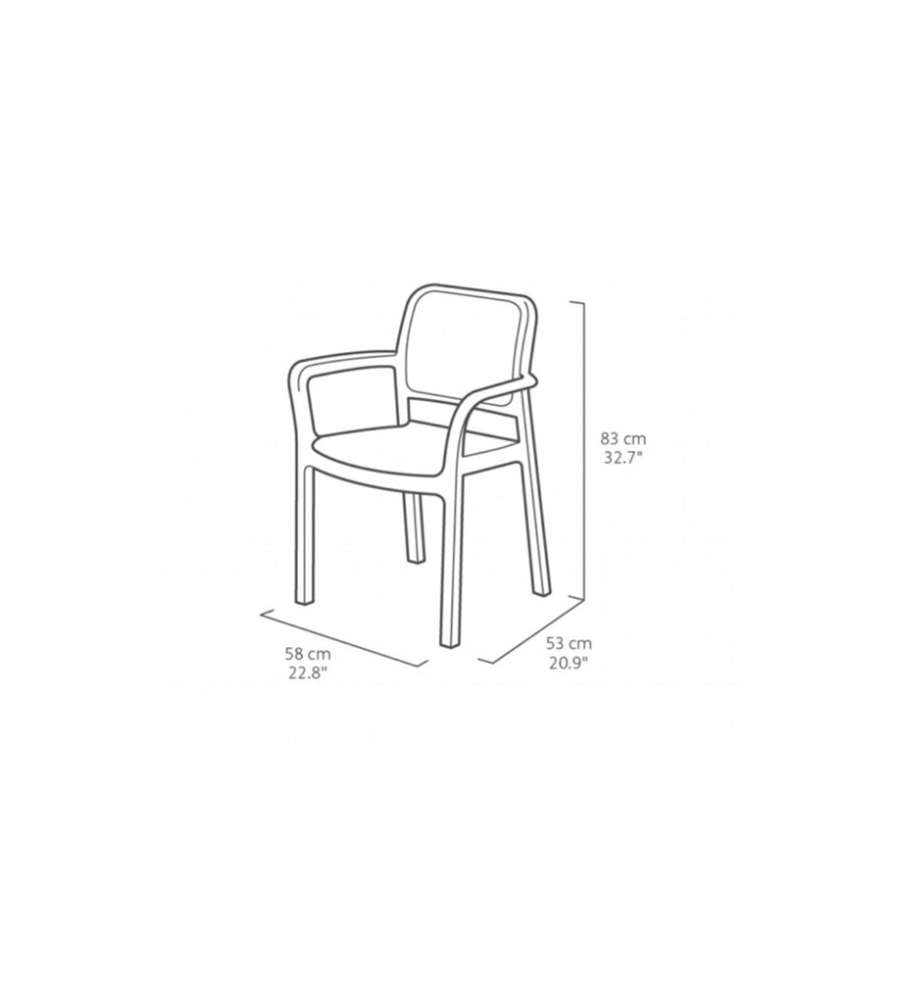 Descrizione: Sedia da giardino Bella cappuccino Keter: elegante e resistente, realizzata in polipropilene con effetto rattan. Colore cappuccino, resistente a UV e intemperie. Impilabile, dimensioni 58x53x83h cm.
