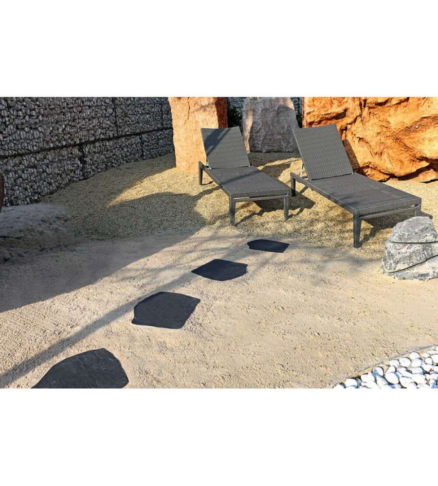 Passo Giapponese Ardesia in pietra ricostituita nera, dimensioni 42x32x2 cm. Antigelo, antiscivolo e resistente a sbalzi di temperatura. Perfetto per camminamenti esterni, crea un'atmosfera suggestiva nel tuo giardino.Destinazione d'uso: