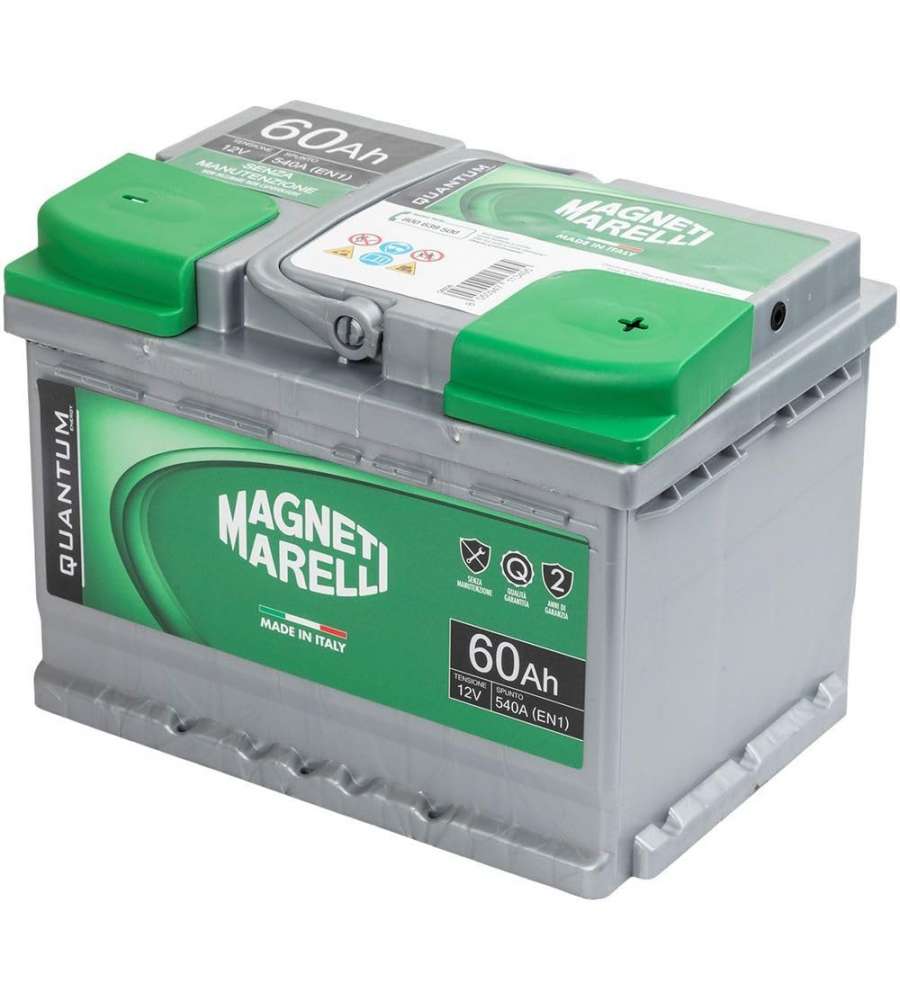 Descrizione: Batteria auto Magneti Marelli Quantum 60Ah, 540A (EN1), pronta all'uso e senza manutenzione. Resistente fino a -18°, garantisce prestazioni elevate. Include 2 anni di garanzia. Ideale per ogni auto!
