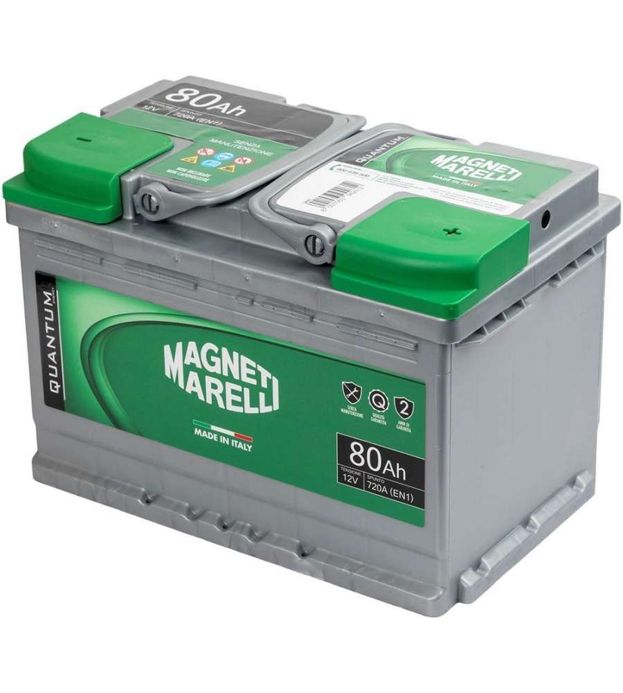 Batteria auto Magneti Marelli Quantum da 80 Ah, pronta all'uso e senza manutenzione. Potenza di 720A, ideale per climi estremi. Compatibile con vari modelli di auto.Volt: