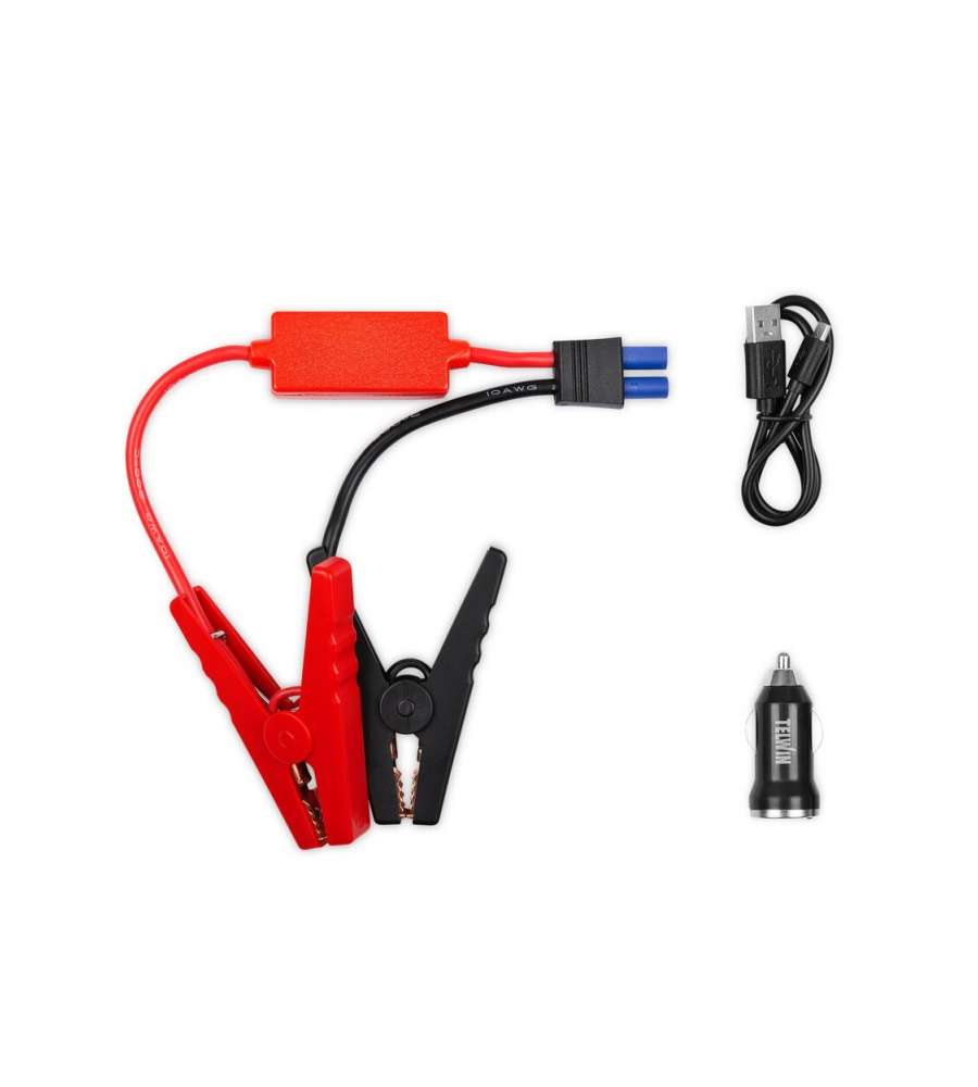 Avviatore portatile Telwin 12V, 1000A start max. Leggero e compatto, con batterie LiPo ad alta efficienza. Uscita USB A Quick Charge e ingresso USB-C. Include luce LED con 3 modalità. Perfetto come power bank e per emergenze.Volt: