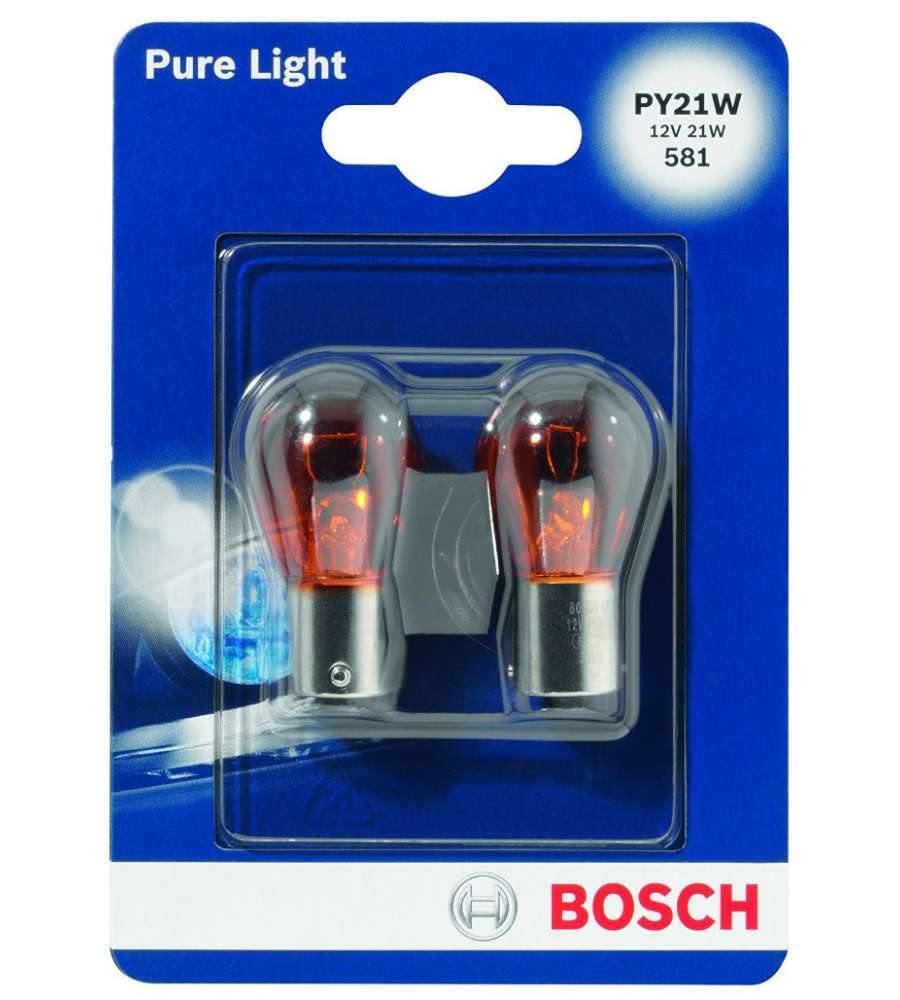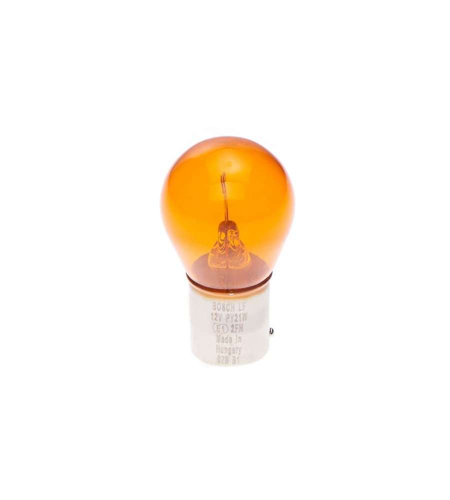 Lampadine Bosch PY21W, 12V, 21W, arancioni per indicatori di direzione. Attacco BAU15s, durata e visibilità ottimali per la sicurezza stradale. Set da 2, compatibili con vari veicoli. Qualità garantita Bosch.Watt: