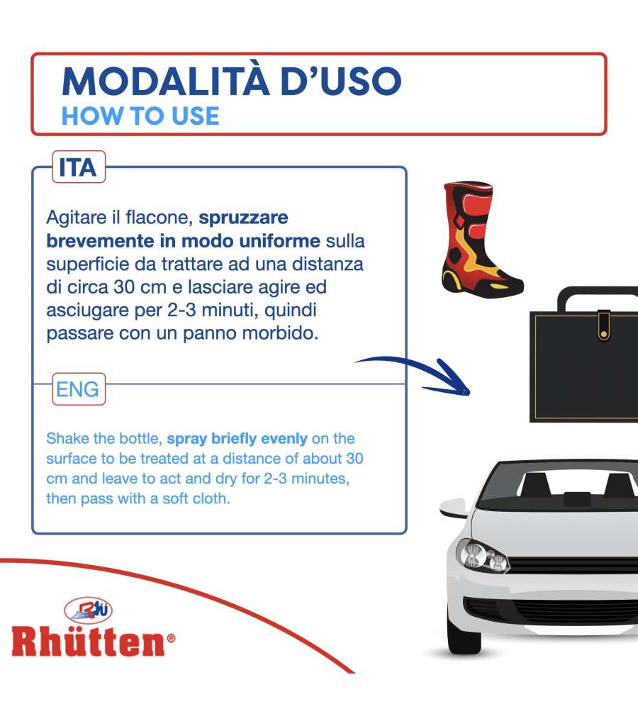 Ideale anche su borse, valigie, scarponi, bauletti moto e su articoli del settore nautico