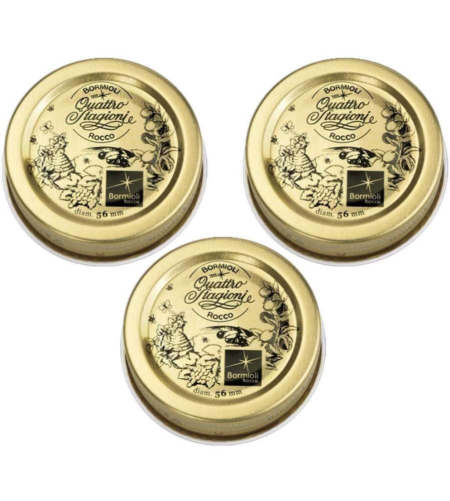 Descrizione: Confezione da 3 tappi Bormioli da 56 mm per barattoli 4 Stagioni, ideali per conservare ermeticamente frutta e verdure. Perfetti per le tue ricette casalinghe!