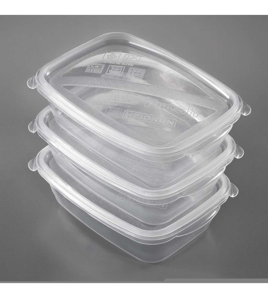 Set di 3 contenitori rettangolari da 0,9L Heidrun. Dimensioni: 20x14x6 cm. Ideali per conservare cibi, pratici e lavabili in lavastoviglie. Perfetti per organizzare la tua cucina!Capacità: