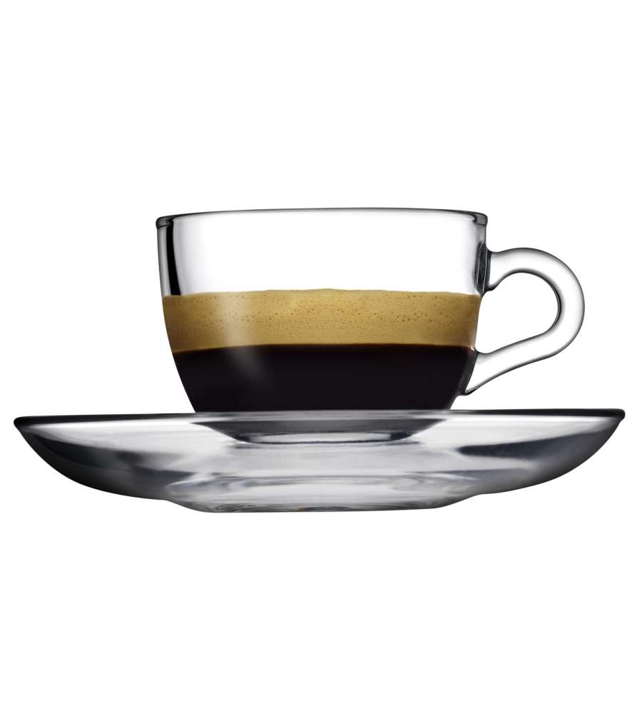 Descrizione: Set di 6 tazzine da caffè in vetro trasparente da 90 ml con piattini. Eleganti e resistenti, sono lavabili in lavastoviglie e perfette per ogni occasione. Gusta il tuo espresso con stile!