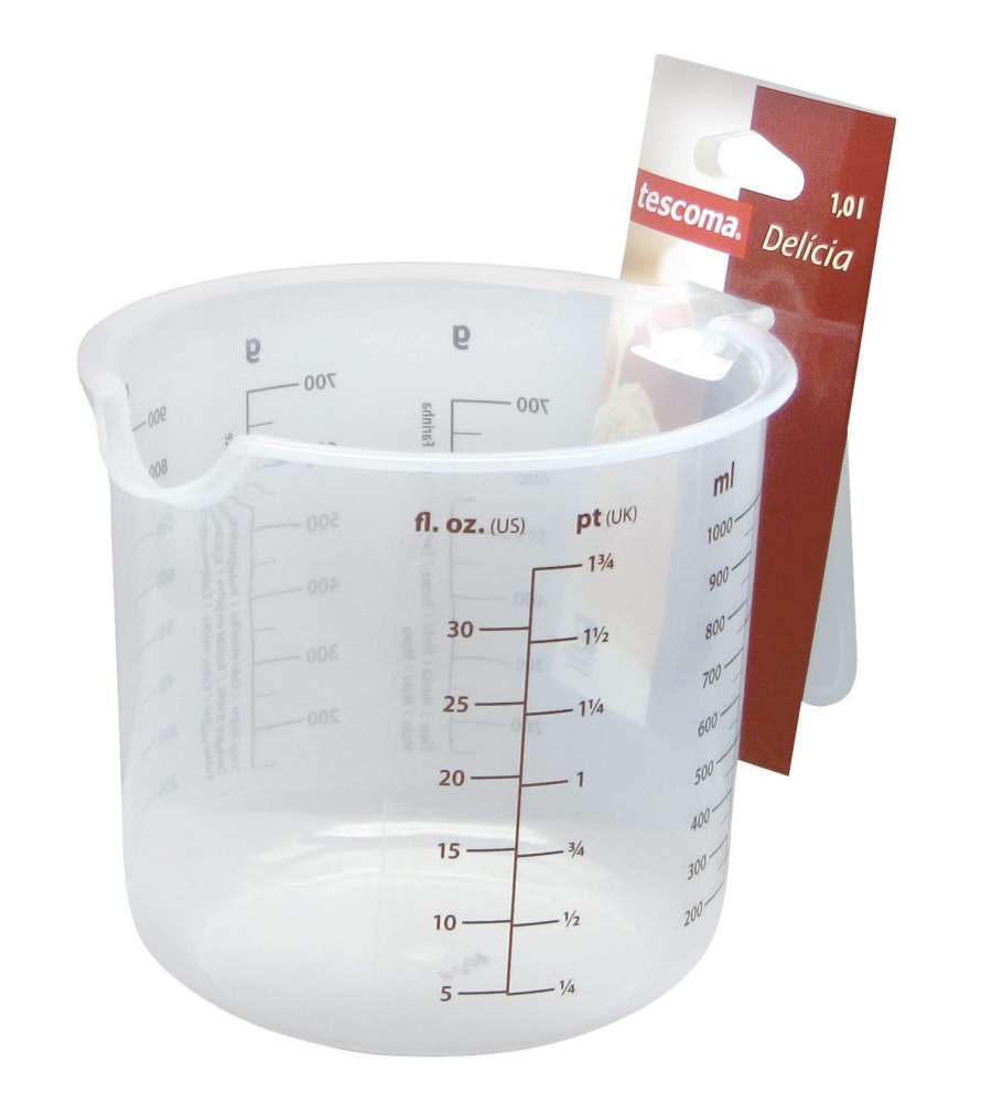 Descrizione: Brocca graduata Delícia da 1 litro di Tescoma, ideale per misurare zucchero, farina e liquidi. Realizzata in plastica BPA free, è lavabile in lavastoviglie e presenta impugnatura ergonomica per un utilizzo pratico.