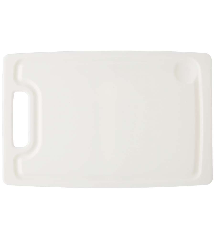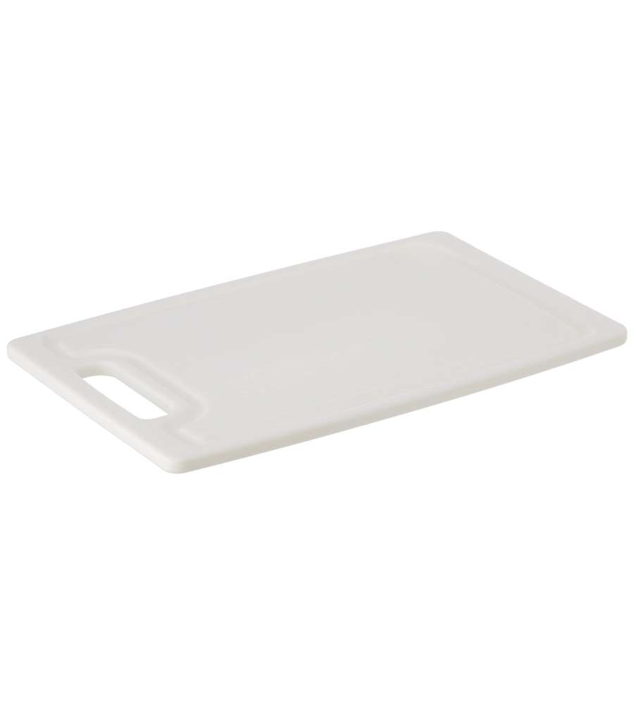 Tagliere rettangolare 30x20 cm in plastica resistente, ideale per tagliare e servire cibi. Non rovina le lame dei coltelli, dotato di scanalatura per raccogliere liquidi. Facile da pulire, adatto per lavastoviglie. Garanzia 3 anni.Composizione: