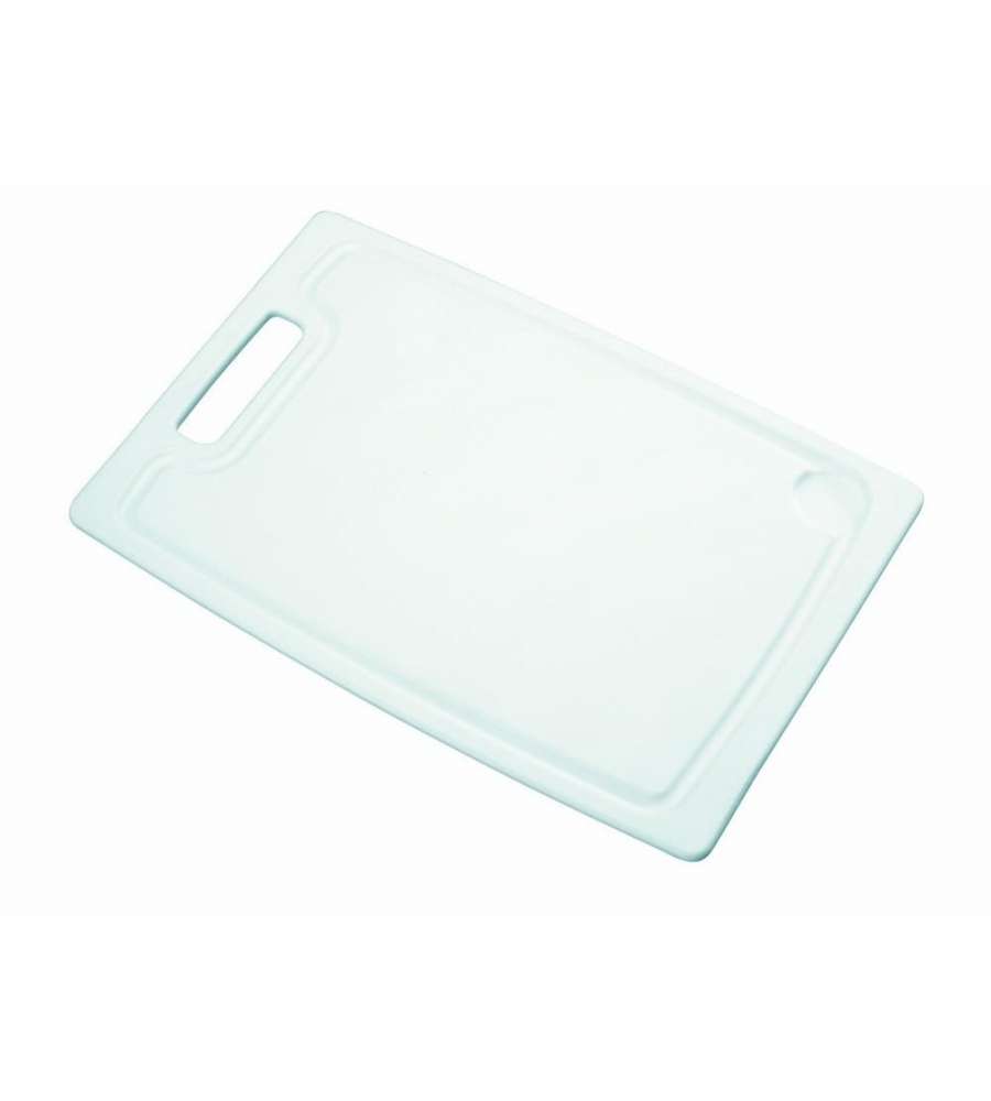 Il tagliere rettangolare Tescoma Presto è un accessorio indispensabile per ogni cucina. Grazie alla sua superficie in plastica resistente, offre una soluzione pratica e durevole per il taglio e il servizio di alimenti. La scanalatura presente sul bordo non solo evita che i liquidi fuoriescano, ma facilita anche la pulizia, rendendo questo tagliere ideale per la preparazione di una varietà di piatti, dalle verdure ai salumi. La sua dimensione compatta di 36x24 cm lo rende facile da riporre, mentre il design elegante e il colore bianco si adattano perfettamente a qualsiasi stile di cucina.