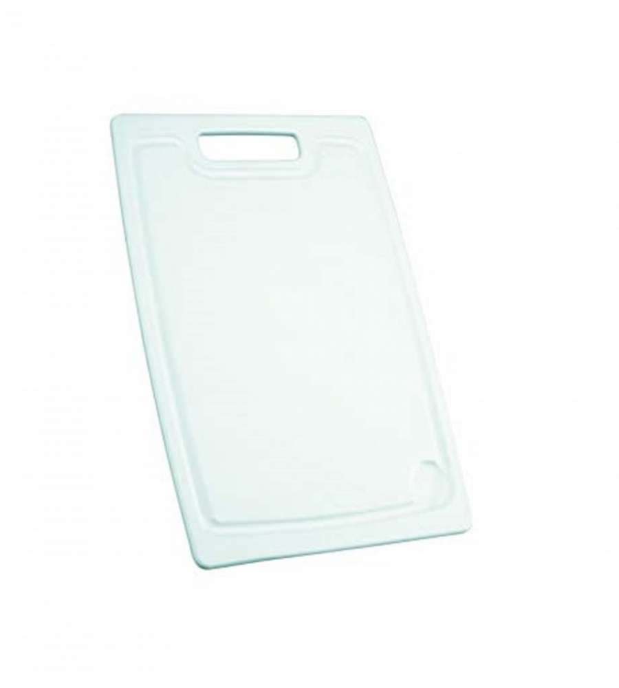Tagliere rettangolare Tescoma Presto 36 x 24 cm in plastica resistente. Ideale per tagliare e servire cibi, non danneggia le lame dei coltelli. Dotato di scanalatura per raccogliere liquidi e impurità. Perfetto per l'uso quotidiano.Uso interno: