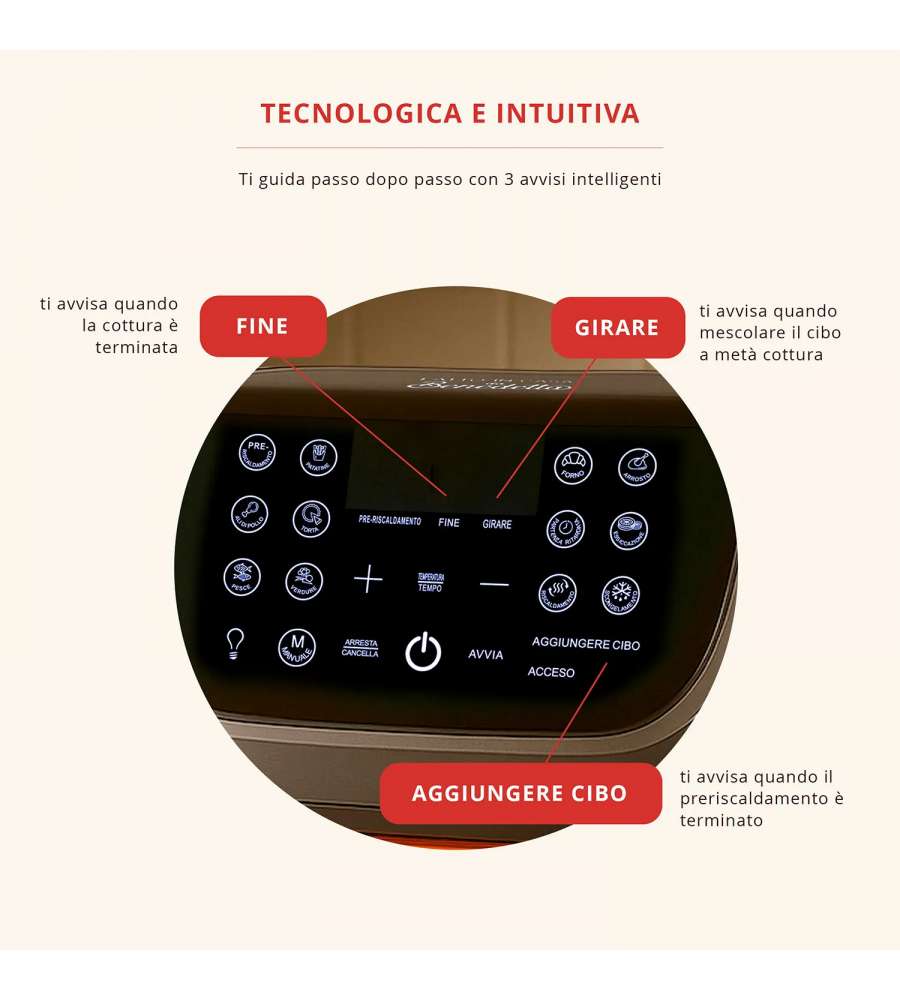 La friggitrice ad aria di FATTO IN CASA da Benedetta rappresenta un'innovazione in cucina, permettendo di ottenere risultati ottimali con il minimo sforzo. Grazie alla sua doppia resistenza, il calore è distribuito in modo uniforme, garantendo cotture perfette di dolci, carni e altro ancora. Con 13 programmi preimpostati, è possibile cucinare una vasta gamma di piatti senza doversi preoccupare di impostazioni complicate. Inoltre, la funzione di partenza ritardata consente di pianificare i pasti con comodità. La finestra di controllo e il segnale acustico per girare il cibo aggiungono un tocco di praticità, rendendo l'esperienza culinaria ancora più semplice e piacevole. Ideale per chi ama sperimentare in cucina senza rinunciare alla qualità e alla rapidità.