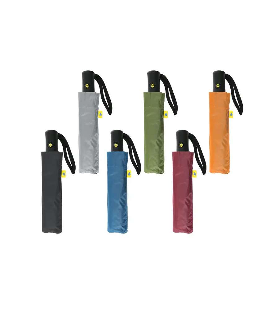 Ombrello mini con apertura automatica, copertura di 98 cm. Realizzato in poliestere con 8 stecche in metallo e fibra di vetro. Asta in metallo con impugnatura in plastica, chiuso misura 28,5 cm. Colori assortiti e custodia in tessuto inclusa.Composizione: