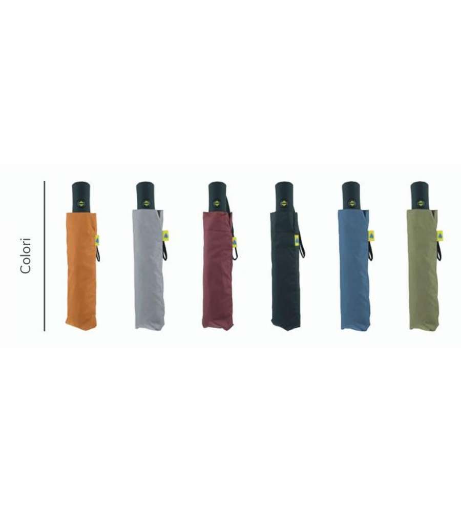 Descrizione: Ombrello mini con apertura automatica in 3 sezioni. Realizzato in poliestere con 8 stecche in metallo e fibra di vetro. Compatto e resistente, si chiude a 28,5 cm. Disponibile in colori assortiti (non selezionabile).