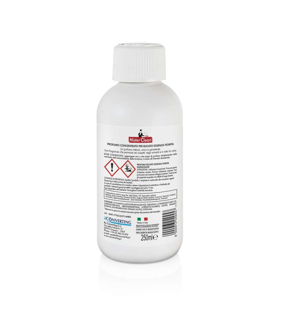 Descrizione: Rendi il tuo bucato fresco e profumato con Mister Clean Profumo Concentrato Essenza Fiorita. Formula concentrata da 250ml, ideale per 35 lavaggi. Fragranza intensa e duratura per una freschezza senza pari!
