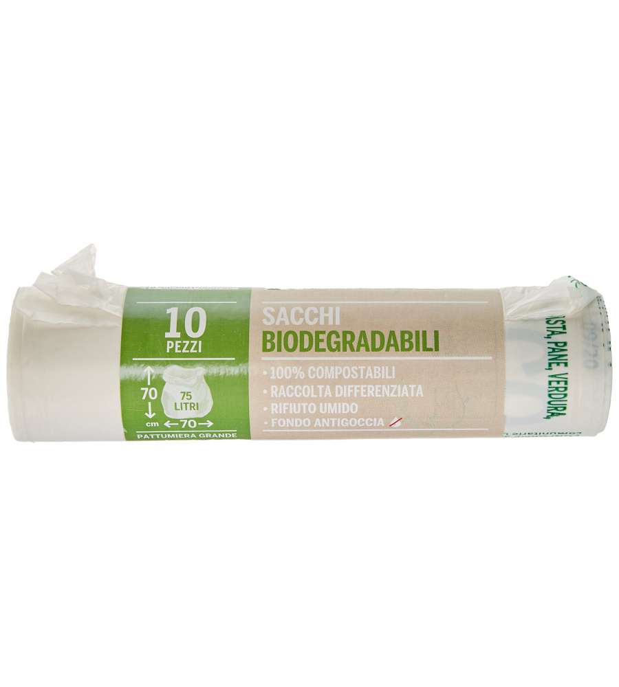 Descrizione: Sacco immondizia biodegradabile Gallo, 70x70 cm, ideale per rifiuti umidi e compostabili. Resistente, con fondo tenuta liquidi e confezione salvaspazio. Confezione da 10 pezzi, 100% eco-friendly.