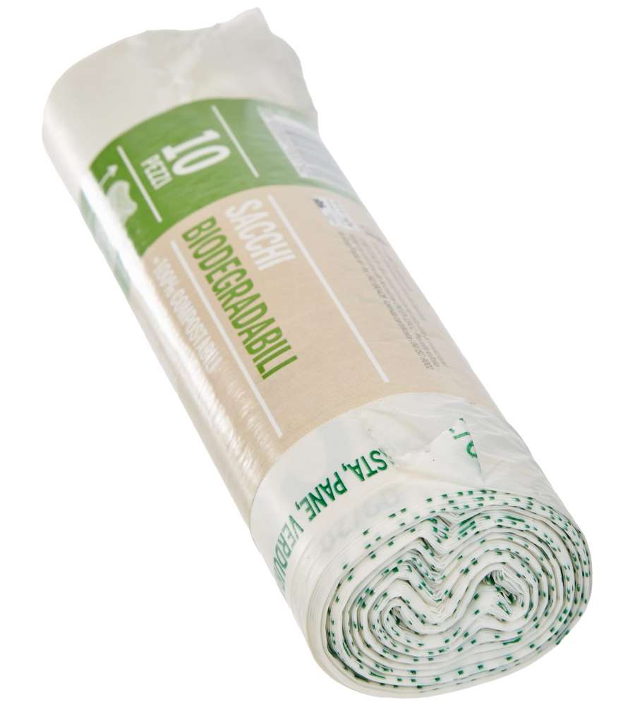 Sacco per immondizia biodegradabile e compostabile Gallo, dimensioni 70x70 cm, resistenza media, fondo a tenuta liquidi. Confezione da 10 sacchi, ideale per rifiuti umidi e compostabili. Rispetta l'ambiente, 100% biodegradabile.Capacità: