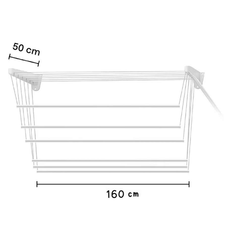 Stendibiancheria saliscendi Framar, robusto e salvaspazio, da parete o soffitto. Aste in acciaio plastificato da 160 cm, capacità di stenditura utile 10 m. Montaggio semplice con staffe e viti incluse. Ideale per interni ed esterni.Capacità: