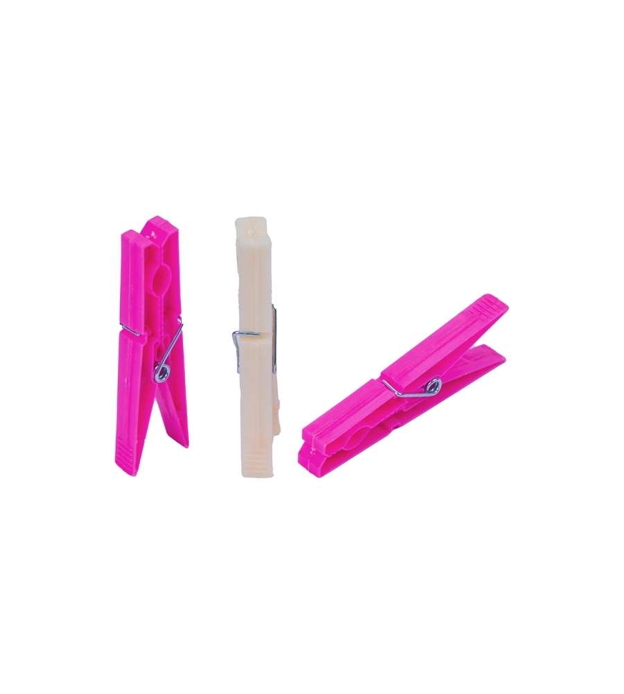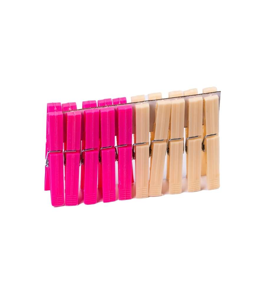 Set di 10 mollette in plastica per bucato in 2 colori, 5 fucsia brillante e 5 beige. Perfette per stendibiancheria, assicurano un'asciugatura sicura e senza cadute. Resistenti alle alte temperature senza deformarsi.Indicato per: