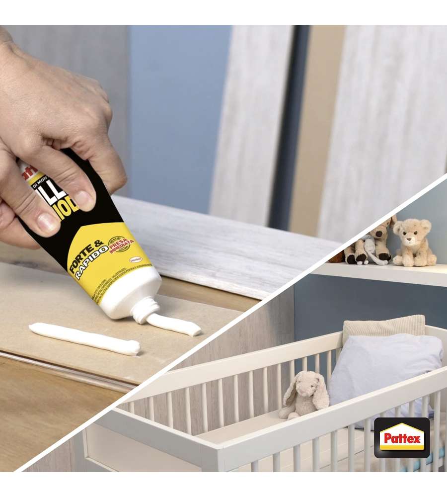 Pattex Millechiodi Original è un adesivo acrilico a base acqua da 100g, con forte presa iniziale (effetto ventosa) e resistenza fino a 60 kg/cm². Ideale per sostituire viti e chiodi, adatto a superfici porose e umide. Uso interno, inodore e facile daPortata massima: