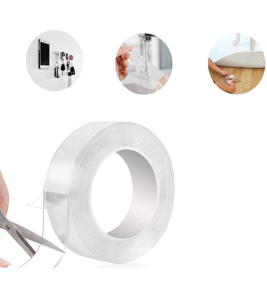 Descrizione: Nastro biadesivo riutilizzabile Nano Gel da 3 m, ideale per metallo, legno, vetro e plastica. Facile da usare, resistente e versatile, perfetto per ogni progetto di fai-da-te!