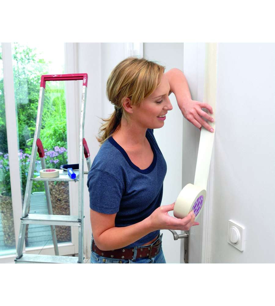 Descrizione: Scopri il nastro in carta Tesa 50x38mm, ideale per mascheratura. Rimozione senza residui fino a 2 giorni. Ecologico e perfetto per verniciature precise su diverse superfici.