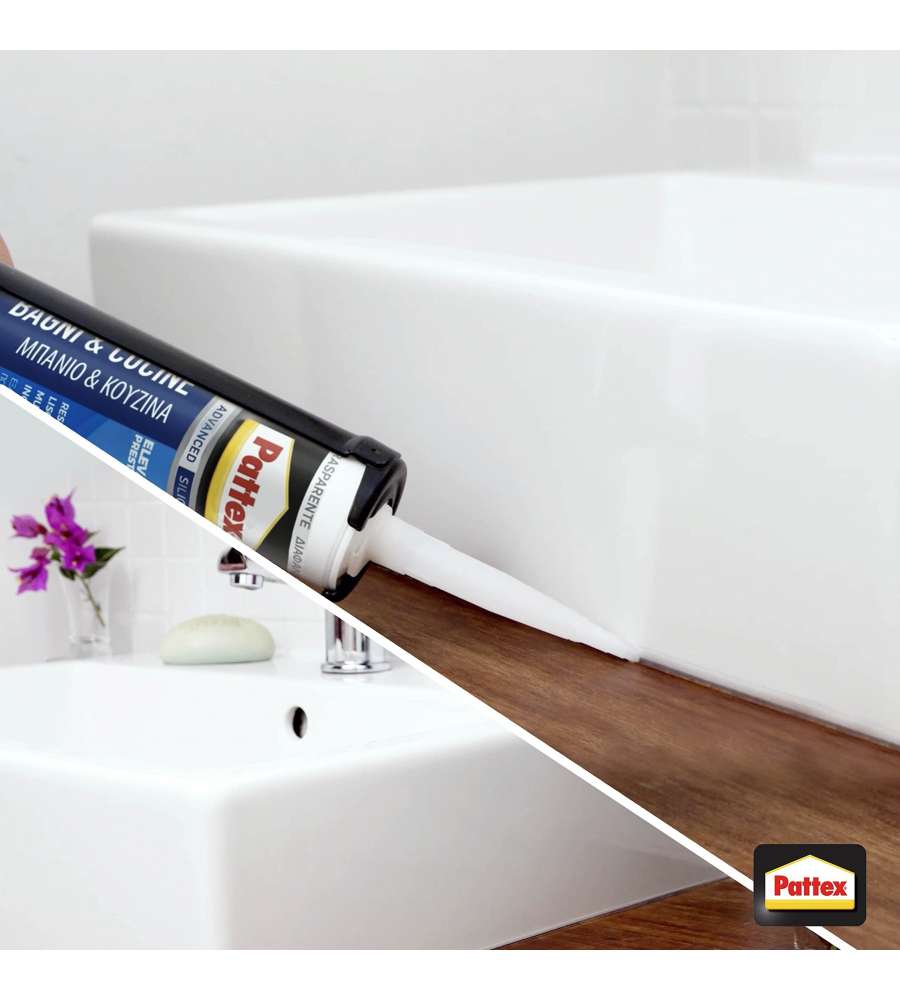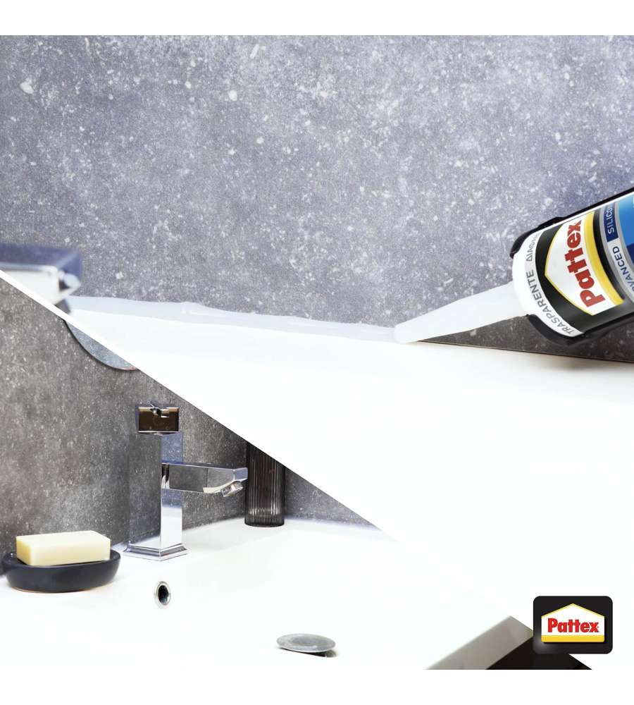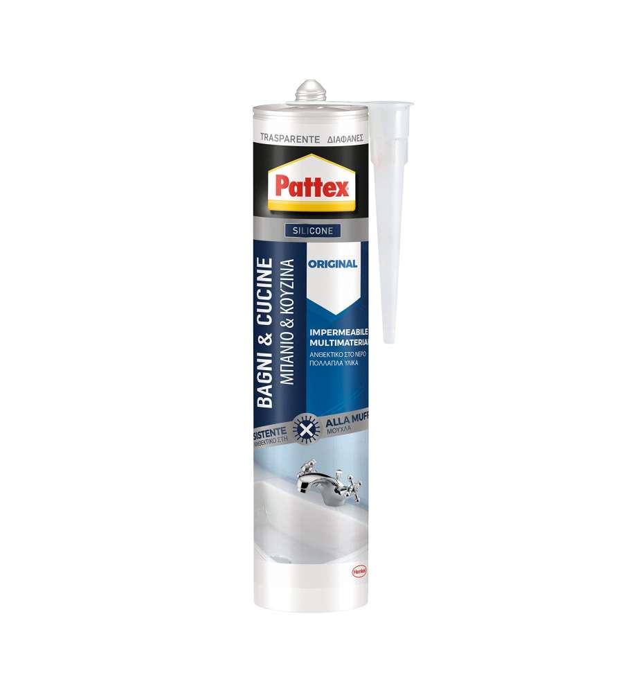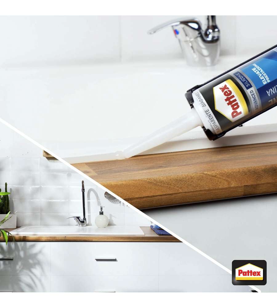Silicone Pattex Sealants Cucine & Sanitari, trasparente, 280 ml. Resistente a muffa, raggi UV, agenti atmosferici e detergenti. Ideale per vetro, ceramica, metallo, legno verniciato, alluminio e plastiche.Uso esterno: