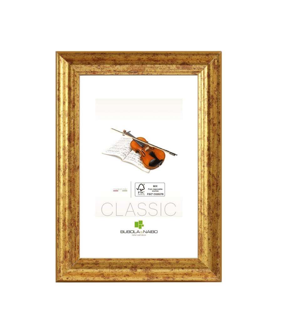 Descrizione: Cornice elegante Claudia Oro 35x50 cm di Bubola & Naibo, realizzata in legno MDF certificato FSC. Design raffinato per valorizzare foto e opere d'arte. Perfetta per ogni ambiente, Made in Italy.