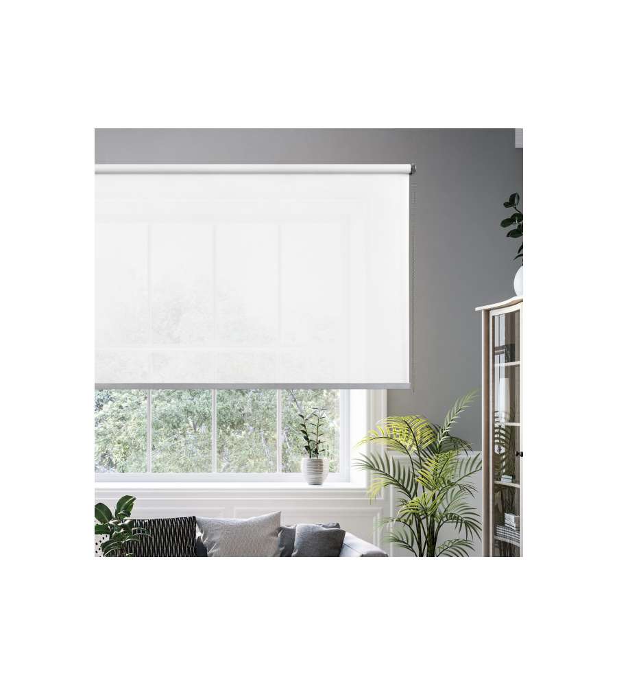 Descrizione: Tenda a rullo decorativa serie Calm. In leggero poliestere semi-filtrante nel colore bianco-neve, da installare a soffitto o parete.