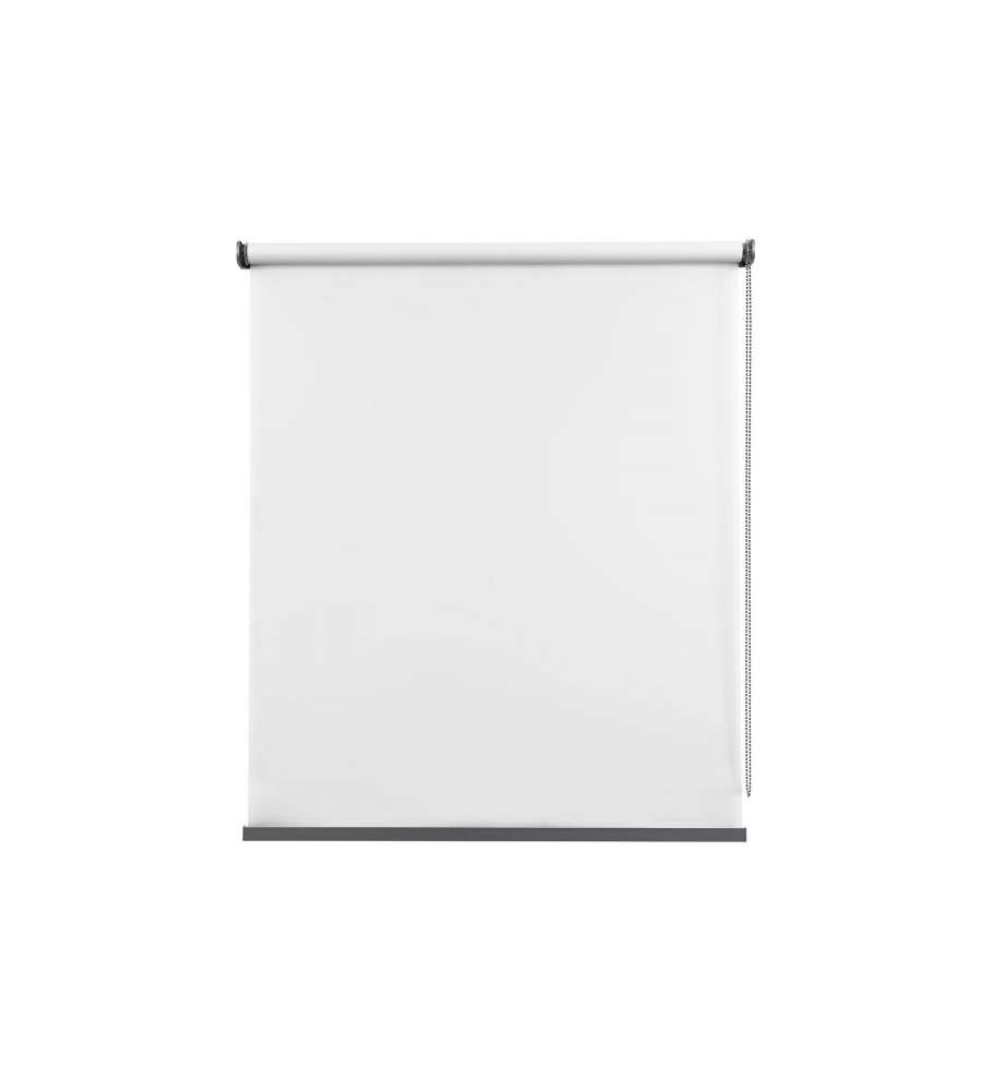 Tenda a rullo Calm in poliestere semi-filtrante, colore bianco-neve, dimensioni 80x250 cm. Installabile a soffitto o parete. Include catenella metallica e supporti satinati. Pulizia con panno umido.Destinazione d'uso: