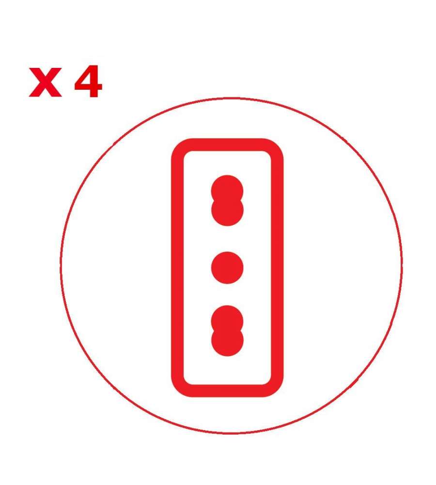 4 prese bivalenti 10 / 16 A 2P+T / 2 prese 10 ? 16 A 2P+T (standard italiano 10 / 16 A e tedesco 16 A con terra lateraleTipo spina: