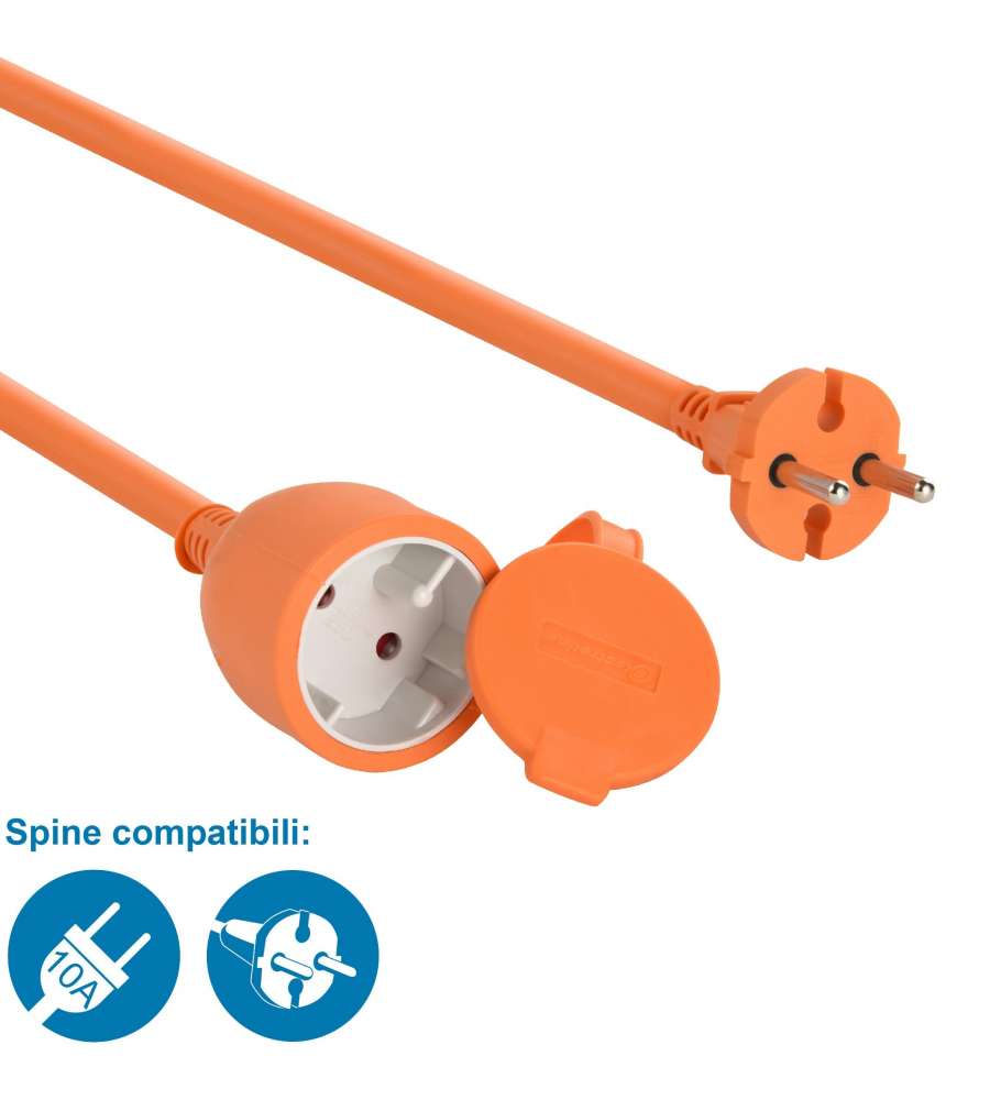 Prolunga da giardino Electraline di 20 metri con cavo H05VV-F, potenza max 3400W. Dotata di spina e presa Schuko, sicurezza per bambini. Adatta per attrezzi da giardinaggio e barbecue, colore arancione. Peso: 1.6 kg.N° poli: