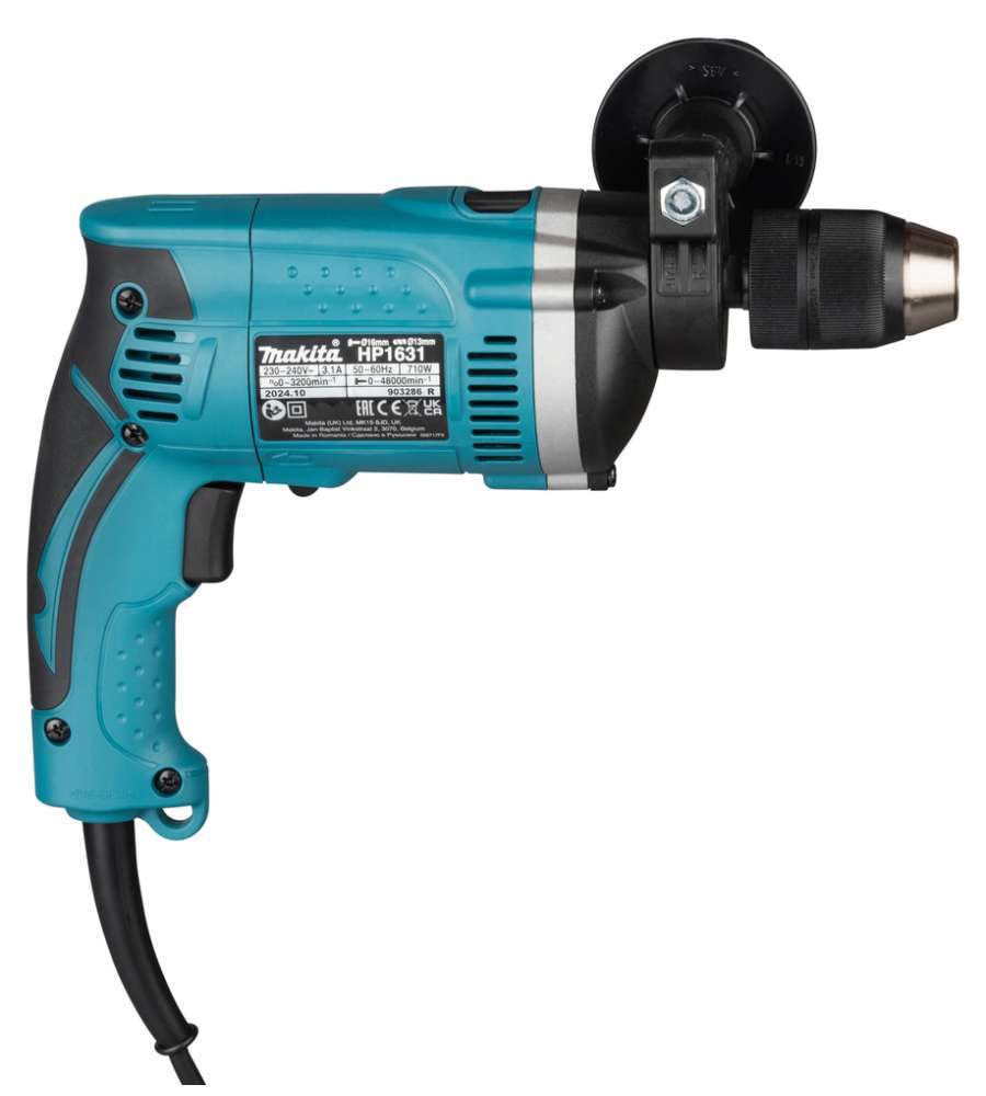 Descrizione: Trapano a percussione Makita HP1631 da 710 W, ideale per forature in legno (fino a 60 mm) e muratura (fino a 16 mm). Alta velocità regolabile fino a 3200 giri/min e design ergonomico per un uso prolungato. Mandrino autoserrante 1,5-13 mm.
