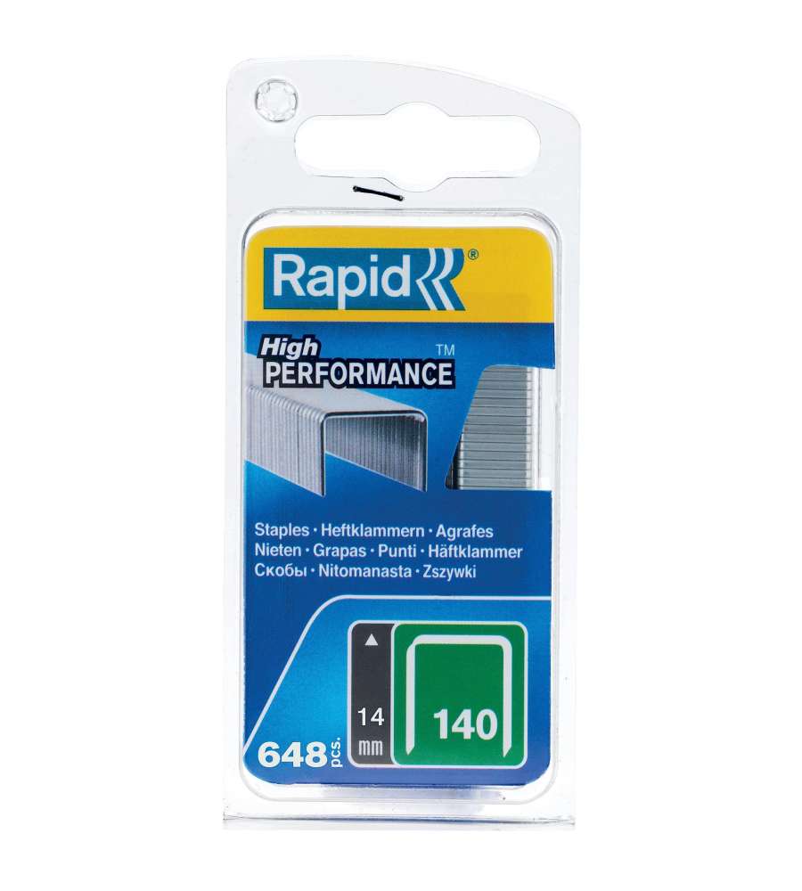 Descrizione: Graffe Rapid N.140 da 14 mm in acciaio zincato, confezione da 650 pezzi. Ideali per fissare materiali isolanti, plastiche e cartone. Design a filo piatto per una tenuta superiore e penetrazione precisa.