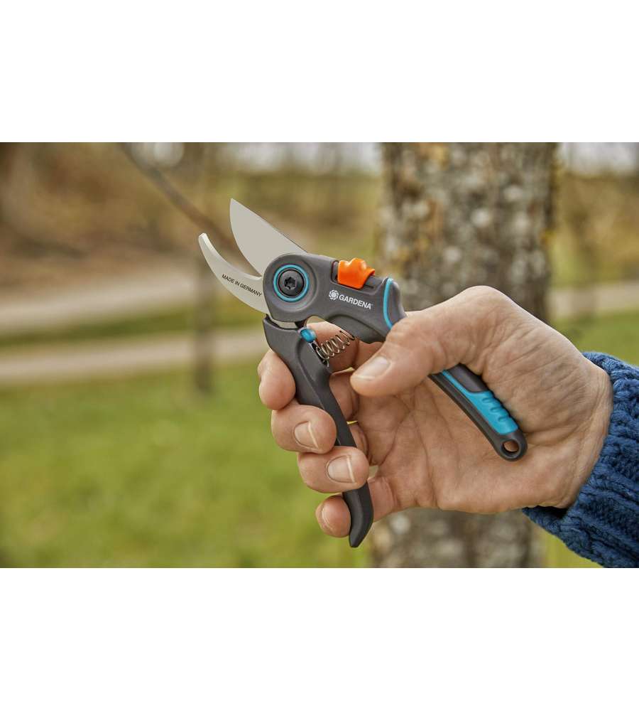 Descrizione: Scopri le forbici da giardino ExpertCut di Gardena, leggere e robuste. Con taglio bypass e apertura a 2 stadi, tagliano rami fino a 22 mm. Ergonomiche e precise, ideali per potature delicate.