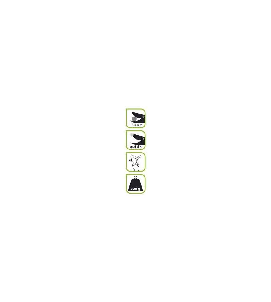 Forbice da giardino by-pass 20 cm con manici in alluminio gommato e lame in acciaio al carbonio SK5. Peso: 200 g. Colore: verde.Materiale manico: