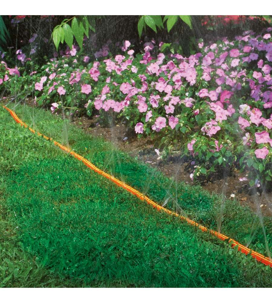 Tubo manichetta Forato Sprizzy M 7,5: lunghezza 15 m, diametro 1/2", pressione massima 3 bar. Ideale per irrigazione superfici strette e lunghe.