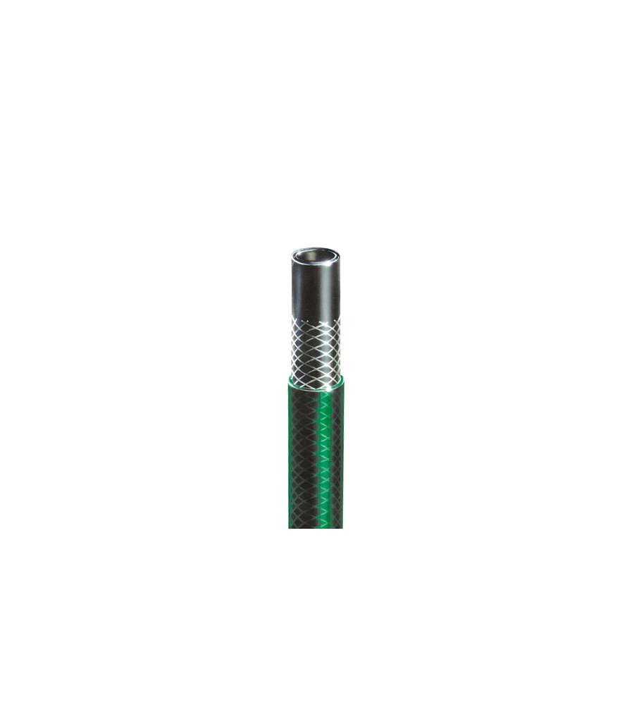 Descrizione: Tubo retinato in 2 strati con rete di rinforzo intermedia in poliestere, sottostrato nero e antialga, copertura verde trasparente.