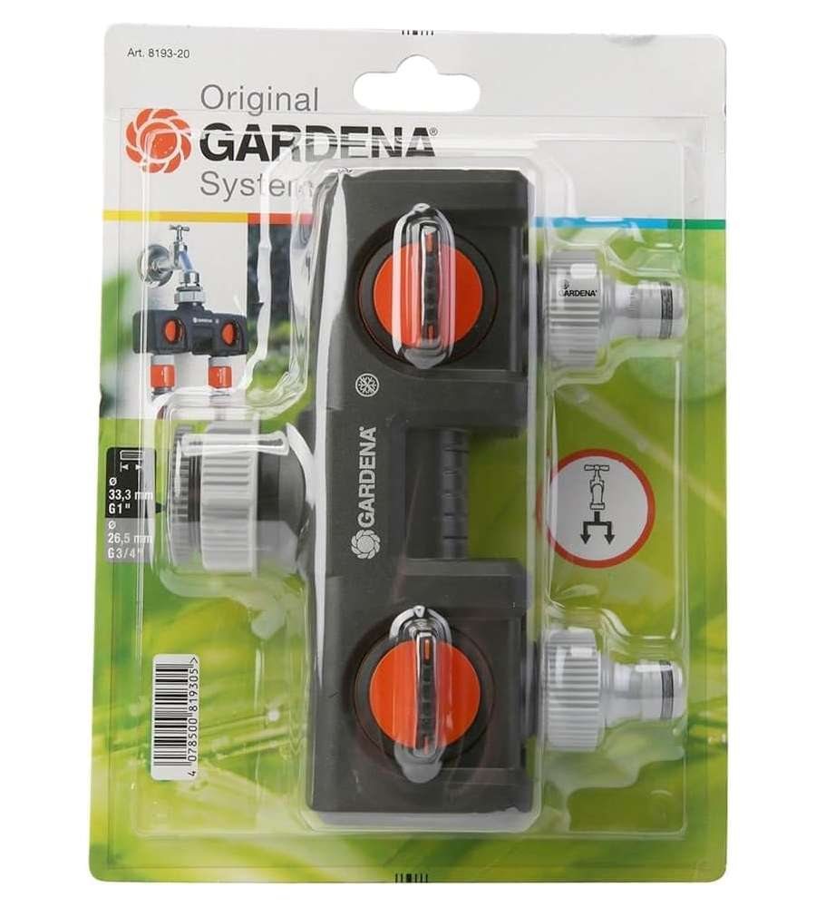Descrizione: Distributore a 2 vie Gardena per rubinetti da 3/4" e 1". Collega due dispositivi contemporaneamente con flusso regolabile. Realizzato in ottone, robusto e facile da installare. Garanzia 2 anni.