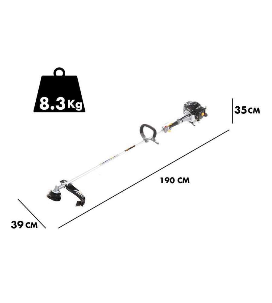 Motore 2 tempi, 42,7 c.c., 1,25 kW, miscela olio 2%, carburatore Walbro, asta D. 26 mm, impugnatura mono, frizione centrifuga, peso 7,7 Kg. Accessori: testina automatica 2 fili, disco 4 denti, bretelle.Potenza:
